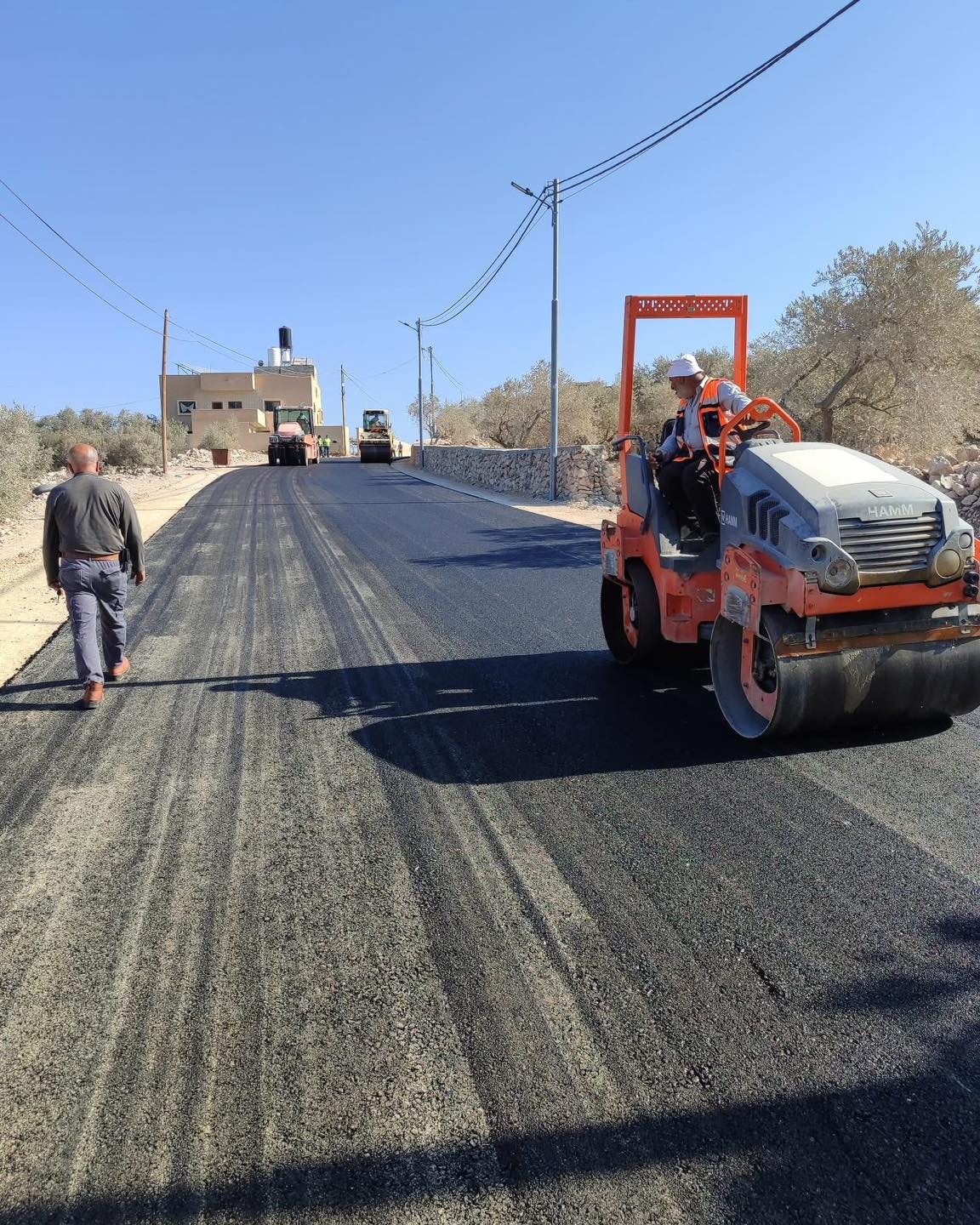 الأشغال العامة تُنفذ أعمال الأسفلت في مشروع تأهيل الطريق الرابط بلعا - اكتابا