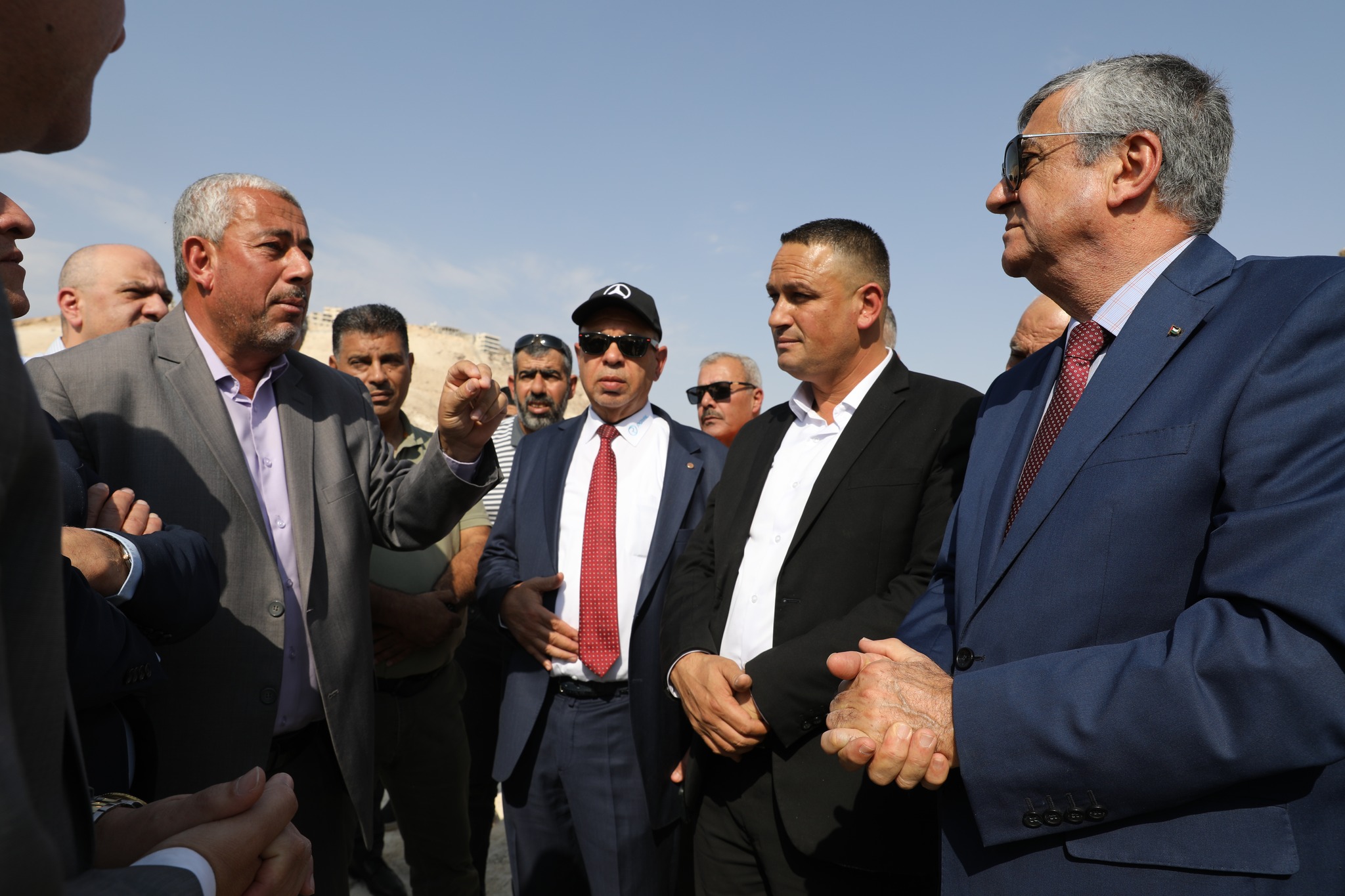 وزير الأشغال العامة والإسكان م. عاهد بسيسو، اليوم، خلال جولة ميدانية على مسار طريق واد النار المساند