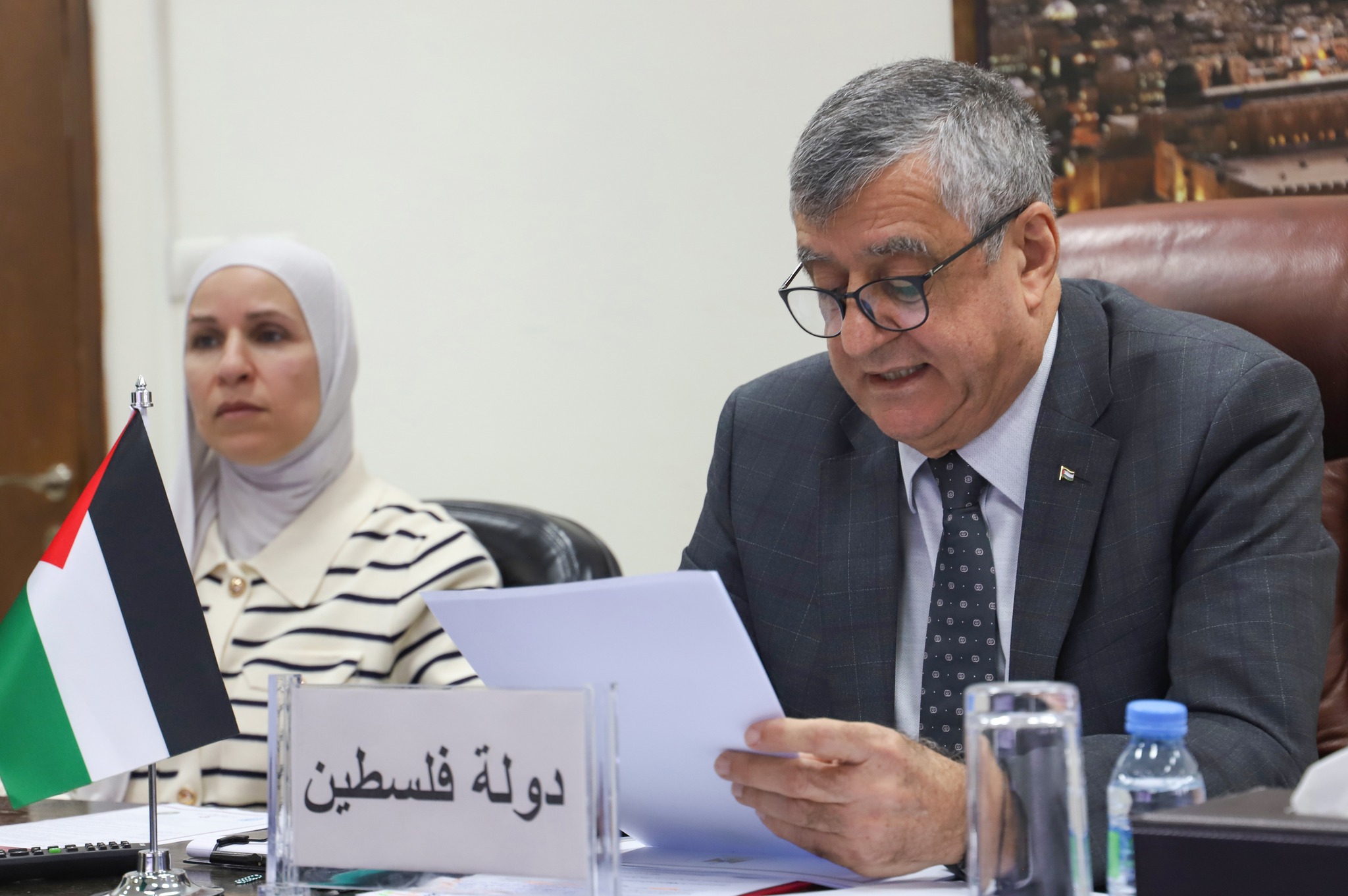 وزير الأشغال العامة والإسكان، م. عاهد فائق بسيسو خلال كلمته في المنتدى الوزاري العربي السادس للإسكان والتنمية الحضارية المستدامة
